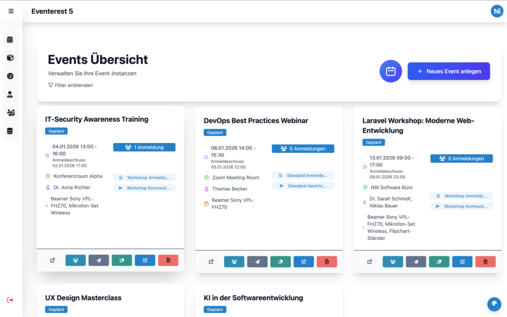 Die Planung eines Events ist komplex. Unsere Eventsoftware sorgt dafür, dass Sie den Kopf frei haben für das Wesentliche: Ihre Gäste. Von der ersten Einladung bis zum Feedback nach der Veranstaltung begleiten wir Sie mit einer All-in-One-Lösung, die Ihre Effizienz steigert und Ihre Teilnehmer begeistert.
